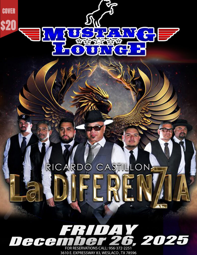 Keep the holiday spirit alive with one of Tejano’s most iconic voices! On Friday, December 26, 2025, Ricardo Castillon y La Diferenzia take the Mustang Lounge stage for a night filled with energy, emotion, and timeless Tejano hits.